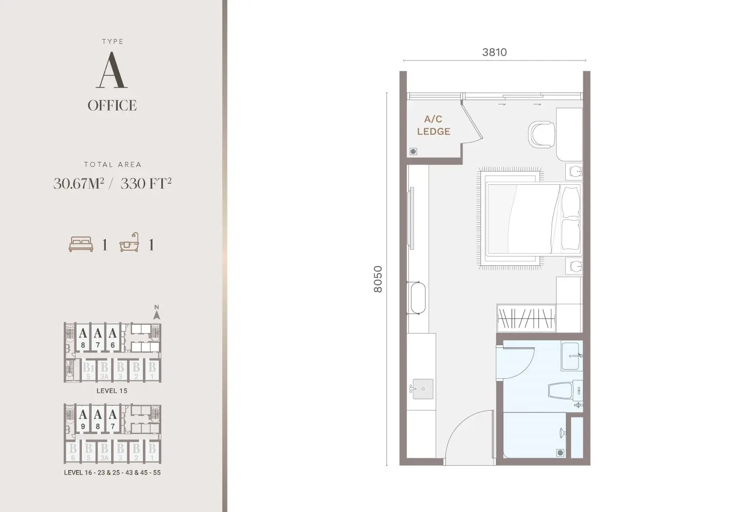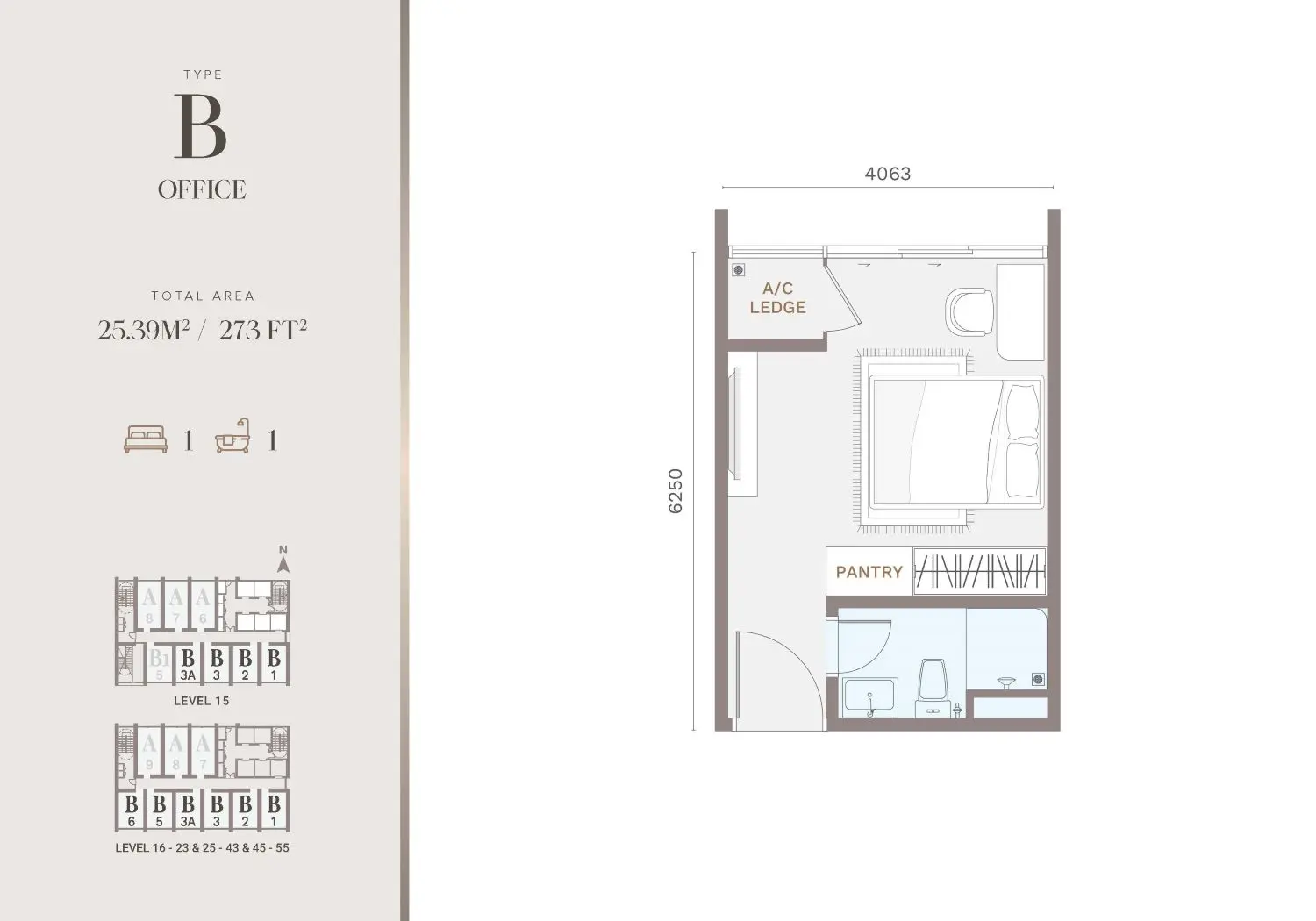 | Built-Up Size | Type A: 330 sq.ft. Type B: 273 sq.ft. |